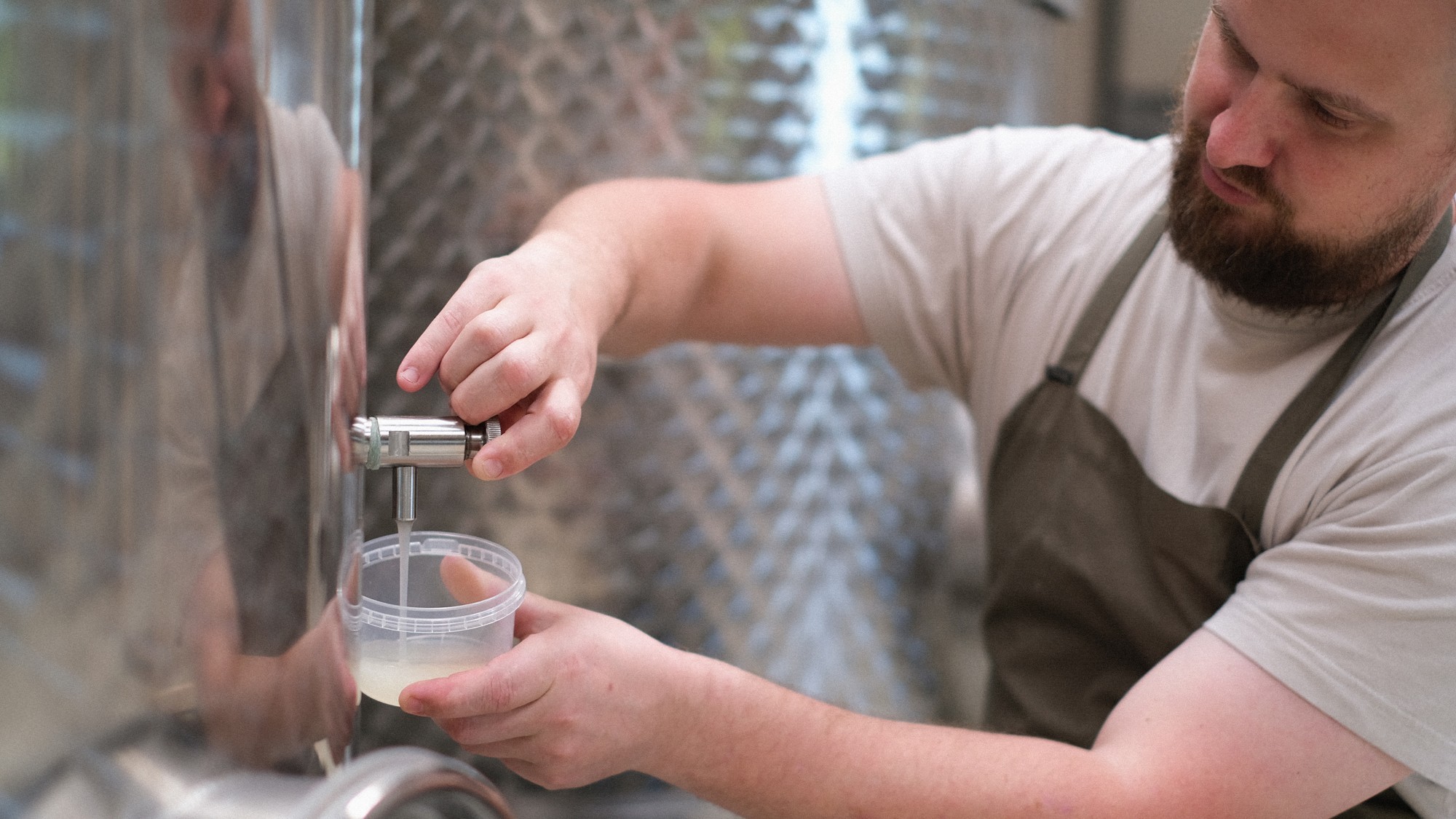 Da avisen besøgte Nocla, der ligger lidt uden for landsbyen Grundfør nord for Aarhus, var en medarbejder i færd med at rengøre ståltankene i produktionshallen efter dagens produktion.