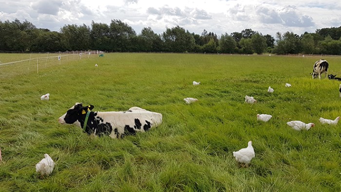 Kvæg, der græsser sammen med økologiske kyllinger, øger kyllingernes brug af arealet og sænker risikoen for angreb fra rovdyr. Det viser et tysk projekt, hvor forsøgshold på ca. 50 kyllinger samgræssede med 10 kalve.