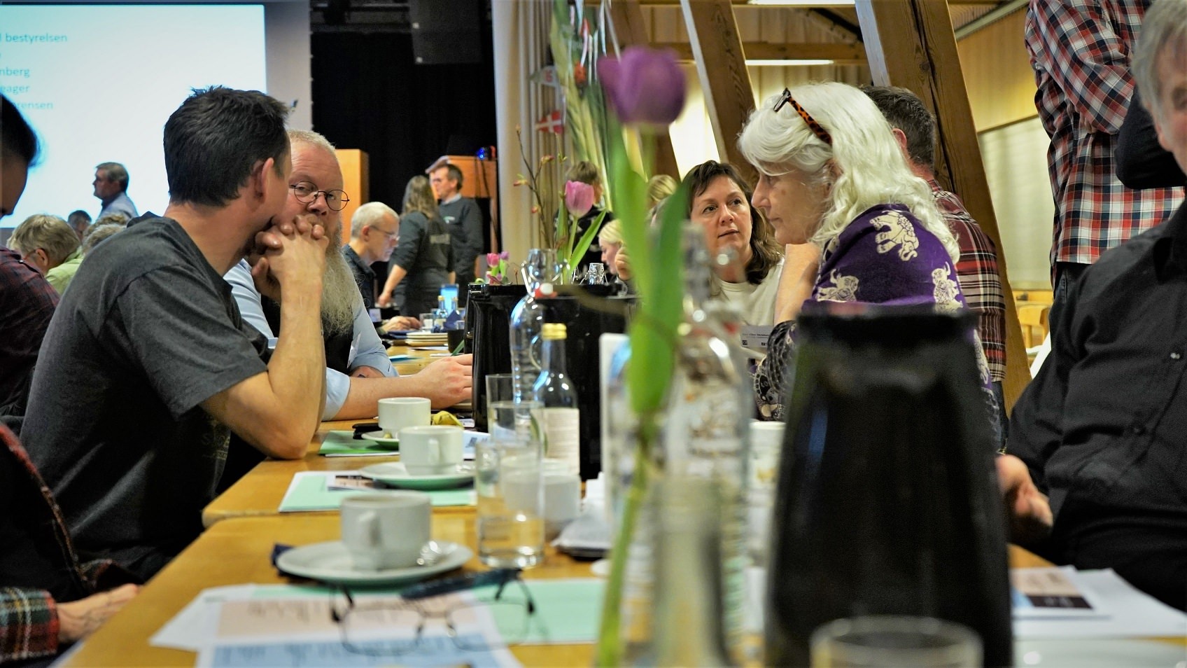 Det er her, vi debatterer stort og småt - både under det officielle program og i pauserne, under middagen fredag aften osv. Det er her, vi mødes med andre økologisk interesserede, snakker med bekendtskaber/venner og skaber nye.