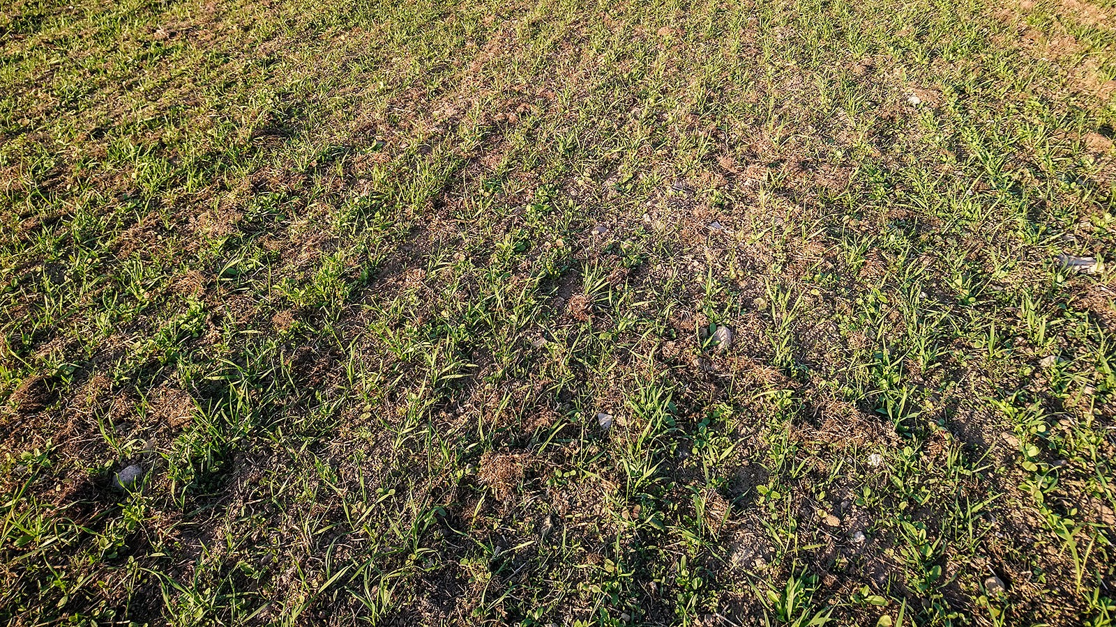 Dagen efter faldt 20 mm regn – hurra for det. Marken er derefter tromlet, og der er sået udlæg – to forskellige slags med 20-30 forskellige bælgplanter/kløver, græsser og urter.